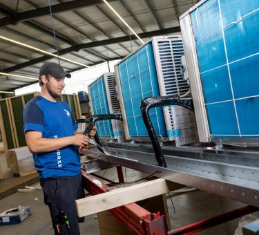 - Energiemodules op skids met warmtepomp, PV-omvormer en leidingwerk